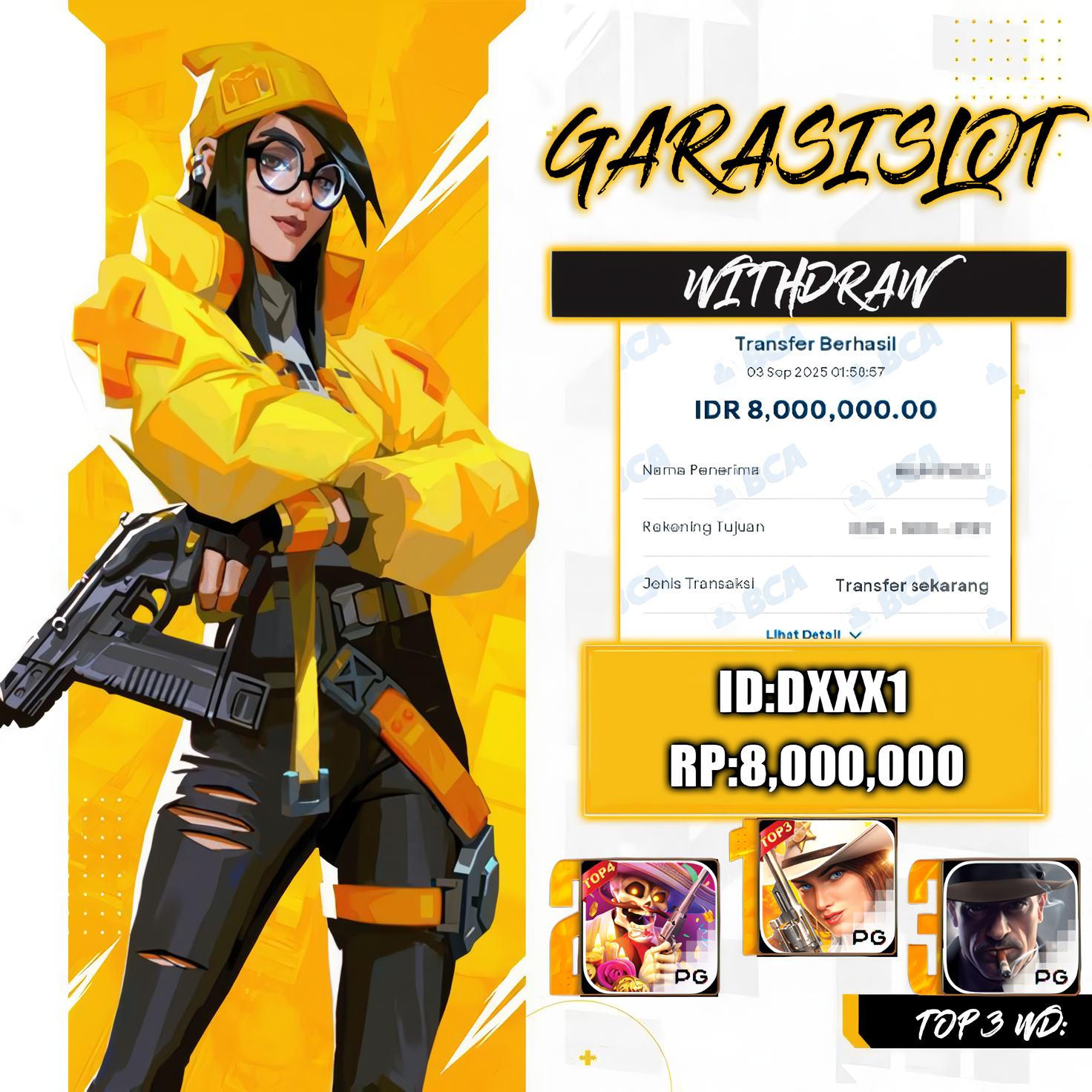 Pemain ID: Dxxx1 GARASISLOT berhasil membawa pulang kemenangan fantastis dari game slot favorit Wild Bounty Showdown! Dengan tema koboi yang seru dan fitur Multiplier Wild