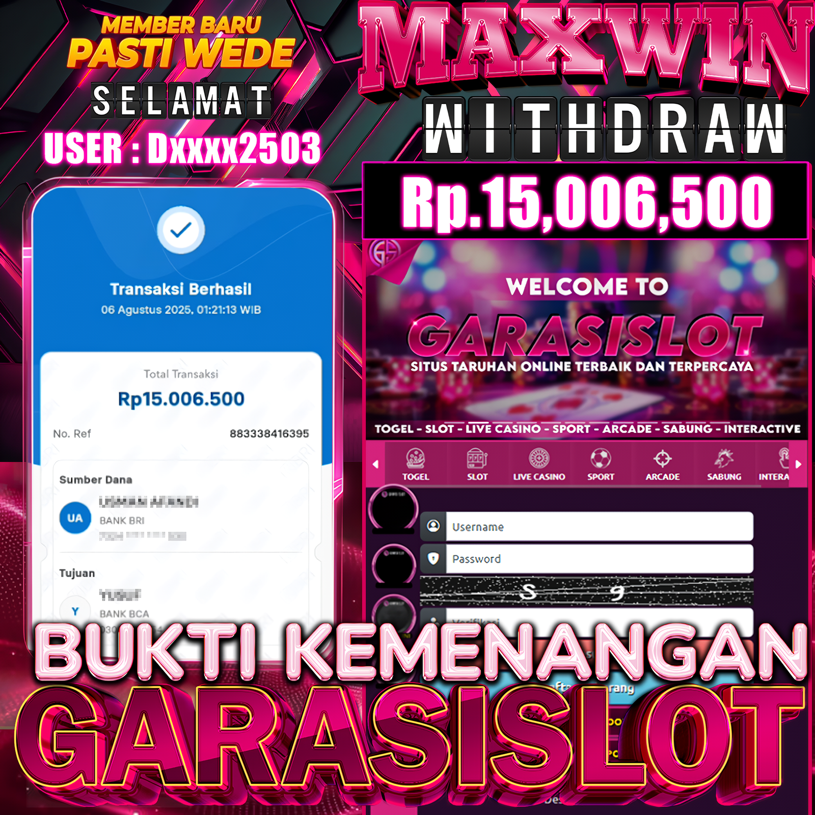 Selamat Kepada Id : dxxxx2503 Atas Withdraw Rp. 15.006.500 Juta Hari ini. Ditunggu Withdraw Selanjutnya dan ajak juga teman temannya bergabung di GARASISLOT GARASISLOT adalah situs game