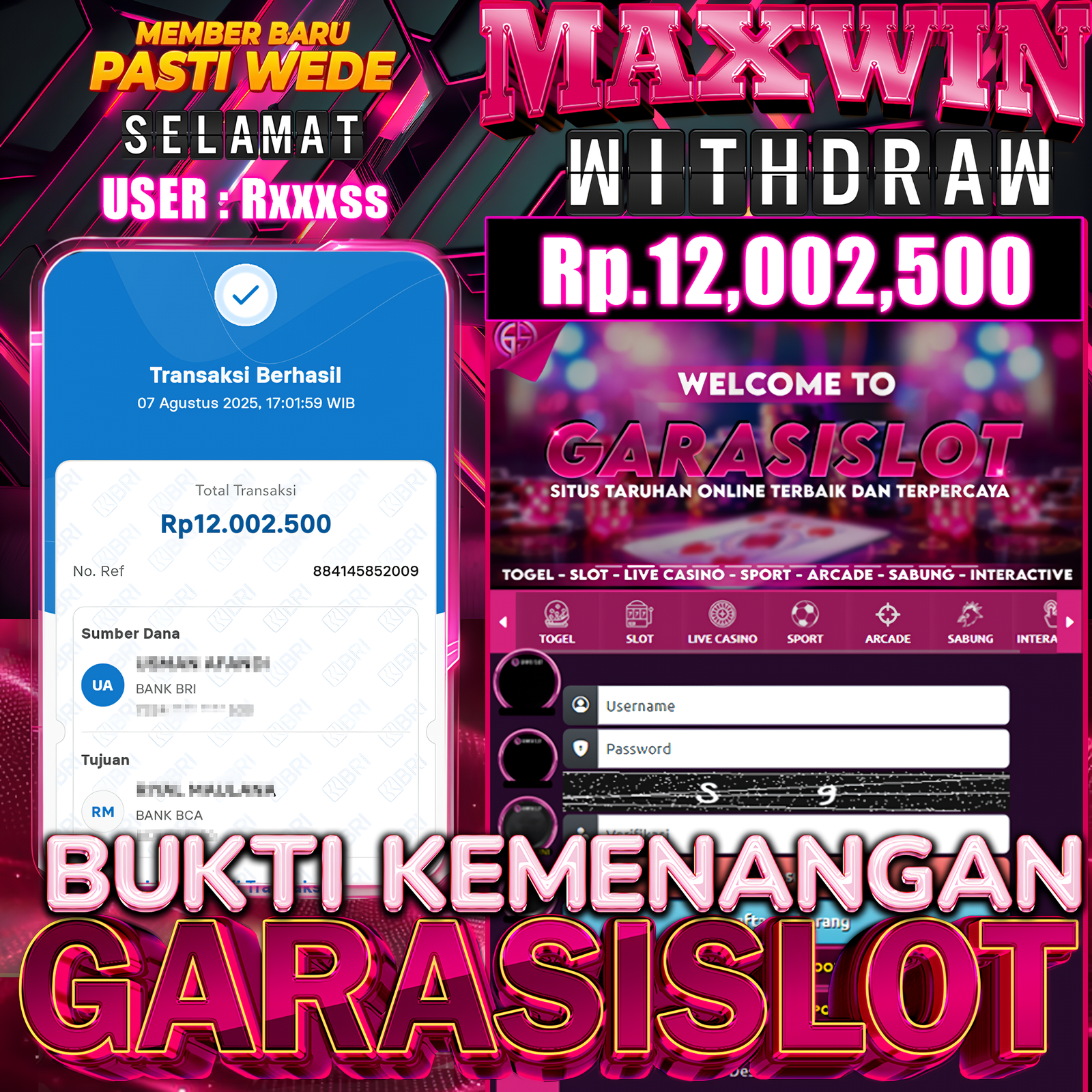 Selamat Kepada Id : RXXXSS Atas Withdraw Rp. 12.002.500 Juta Hari ini. Ditunggu Withdraw Selanjutnya dan ajak juga teman temannya bergabung di GARASISLOT GARASISLOT adalah situs game