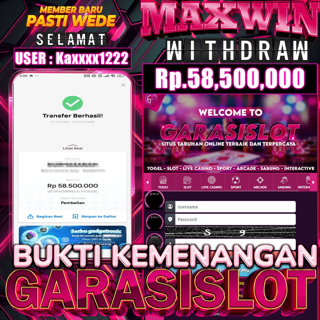 Selamat Kepada ID : gg****88 1a Atas Withdraw Rp. 50.414,000 Juta Hari ini. Ditunggu Withdraw Selanjutnya dan ajak juga teman temannya bergabung di GARASISLOT Rumah