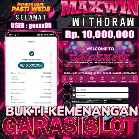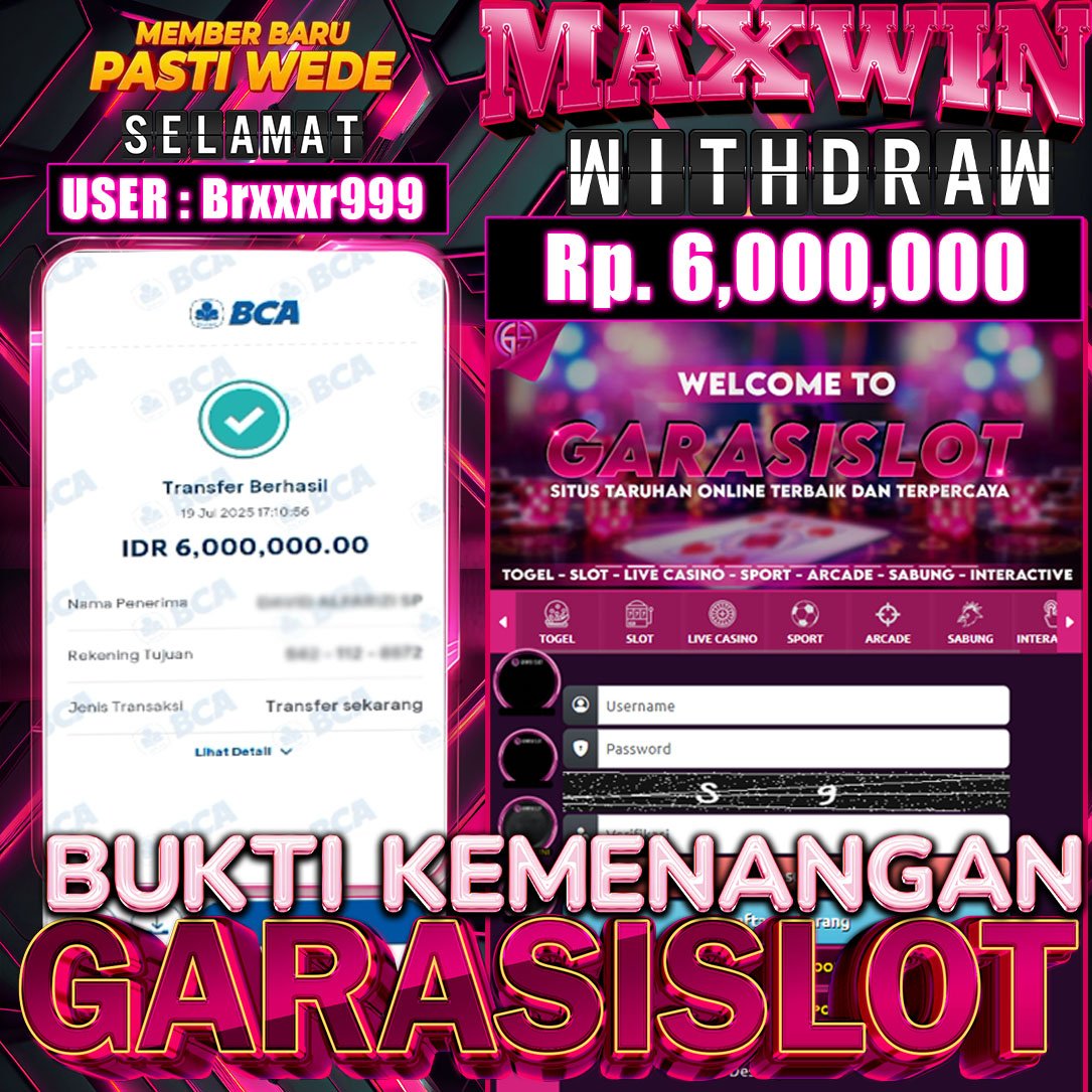 Selamat Kepada ID : brxxxxr999 Atas Withdraw Rp. 6.000,000 Juta Hari ini. Ditunggu Withdraw Selanjutnya dan ajak juga teman temannya bergabung di GARASISLOT Rumah ny