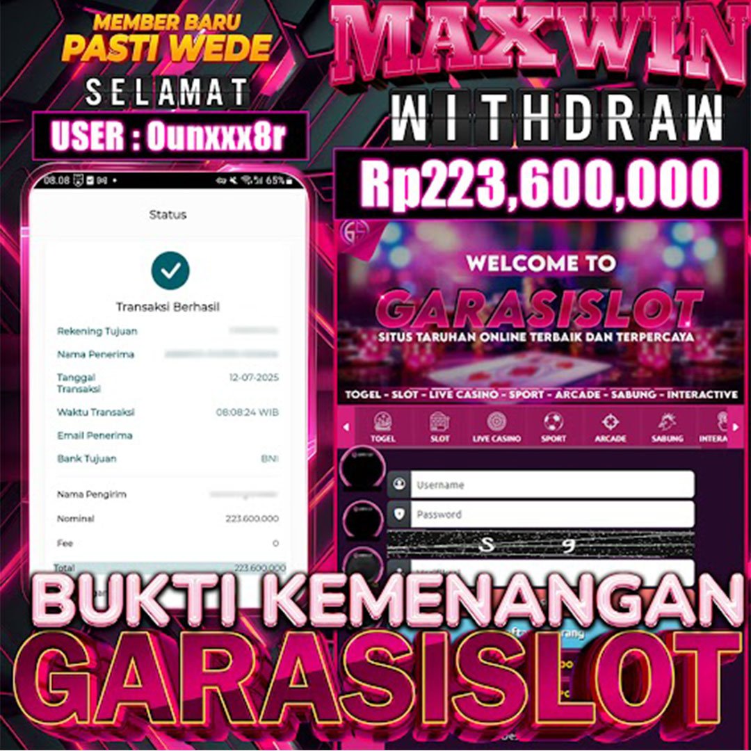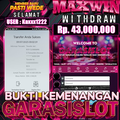 Selamat Kepada ID :kaxxx1222 1a Atas Withdraw Rp. 43.000,000 Juta Hari ini. Ditunggu Withdraw Selanjutnya dan ajak juga teman temannya bergabung di GARASISLOT Rumah ny