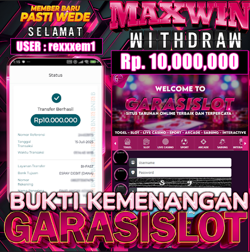 Selamat Kepada ID : rexxxem1 Atas Withdraw Rp 10.000,000 Juta Hari ini. Ditunggu Withdraw Selanjutnya dan ajak juga teman temannya bergabung di GARASISLOT Rumah ny