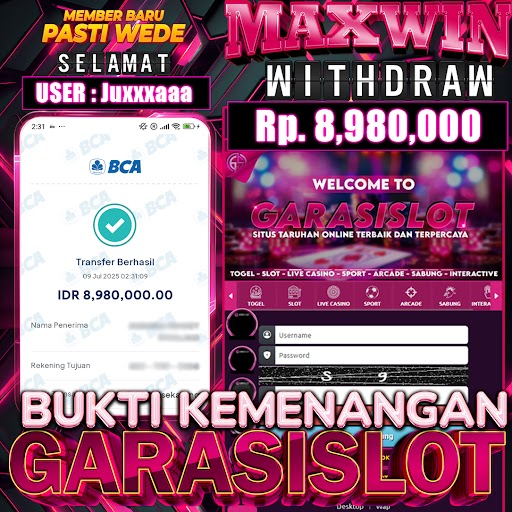 Selamat Kepada ID : juxxxaa Atas Withdraw Rp. 8.980,000 Juta Hari ini. Ditunggu Withdraw Selanjutnya dan ajak juga teman temannya bergabung di GARASISLOT Rumah ny