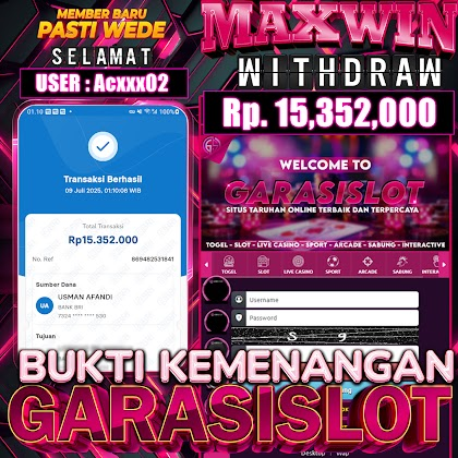 Selamat Kepada ID :acxxx02 1a Atas Withdraw Rp. 15.352,000 Juta Hari ini. Ditunggu Withdraw Selanjutnya dan ajak juga teman temannya bergabung di GARASISLOT Rumah ny