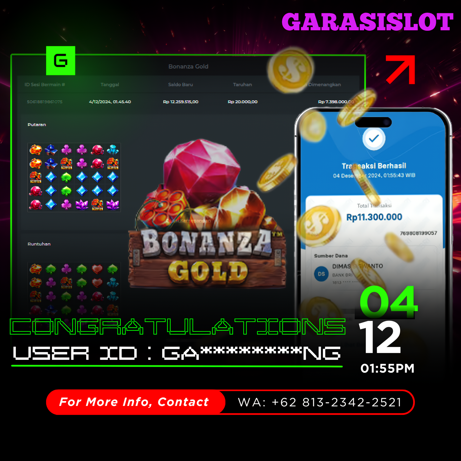 Selamat Kepada Id : GA********NG Atas Withdraw Rp. 11.300.000 Juta Hari ini. Ditunggu Withdraw Selanjutnya dan ajak juga teman temannya bergabung di GARASISLOT GARASISLOT adalah