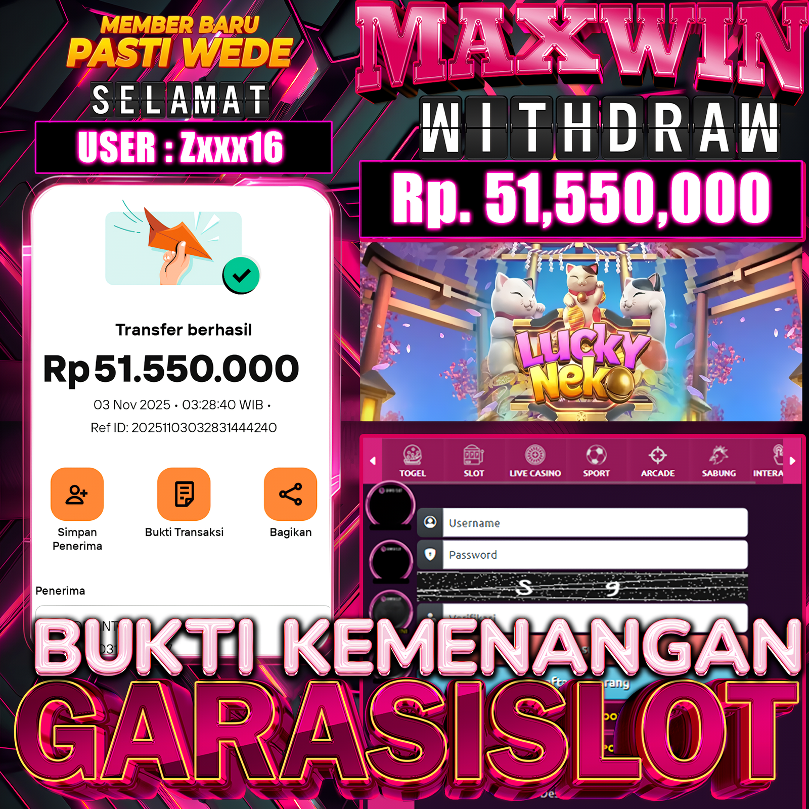 Kecepatan bukan hanya soal balapan, tapi juga soal kemenangan besar! Kali ini, GARASISLOT kembali mencatatkan momen luar biasa dari game slot penuh aksi — Speed