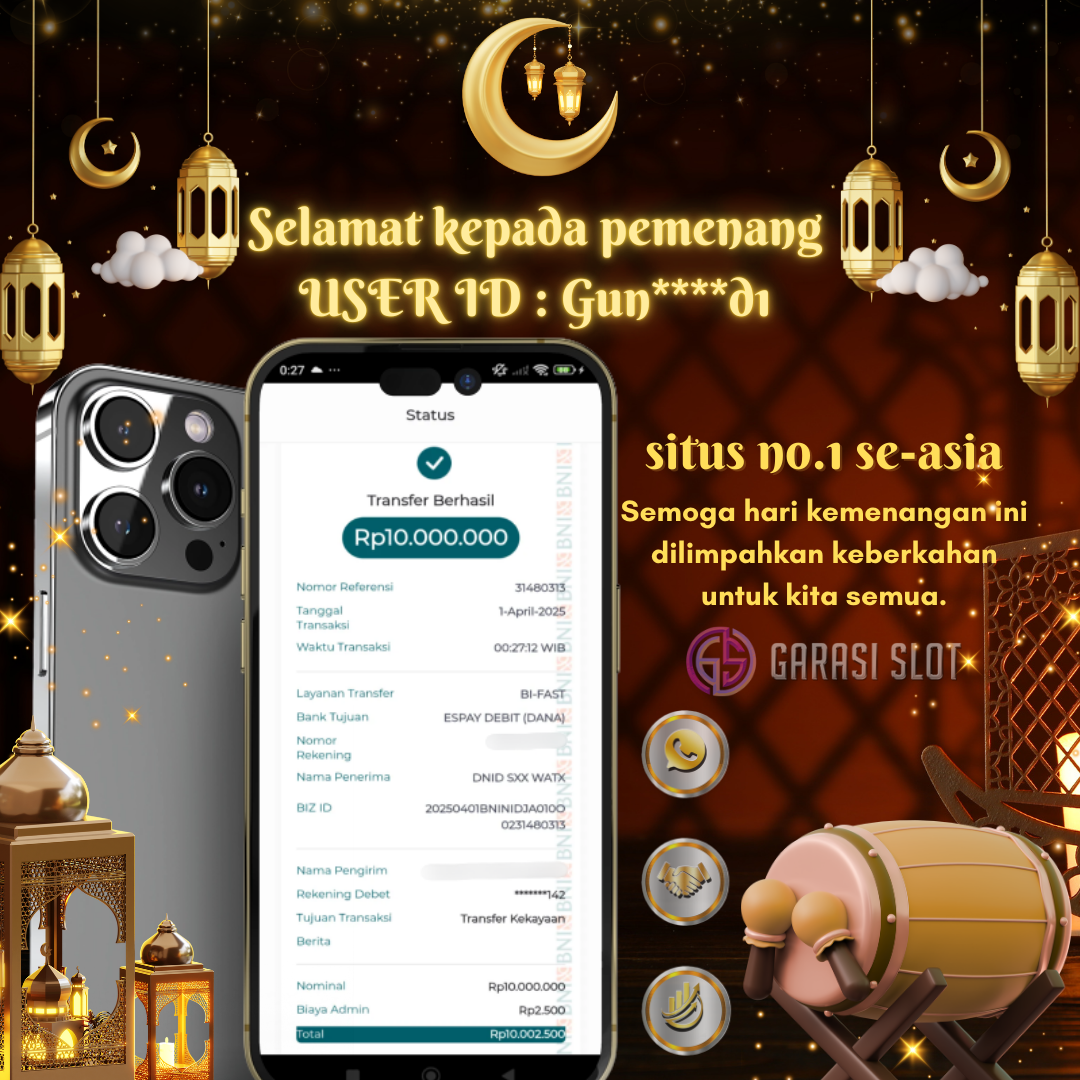 Selamat Kepada Id :ID garuin***583 Atas Withdraw Rp 10.000.000 Juta Hari ini. Ditunggu Withdraw Selanjutnya dan ajak juga teman temannya bergabung di GARASISLOT