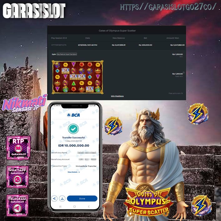 Selamat atas kemenangan user ID: kevin***251 yang telah berhasil mendapatkan jackpot di permainan PRAGMATIC dengan kemenangan besar RP 10.000.000,-. Setelah berhasil isi form withdraw team GARASISLOT langsung proses hanya 2-3 menit untuk transfer kemenangan team kita selalu yang terbaik.