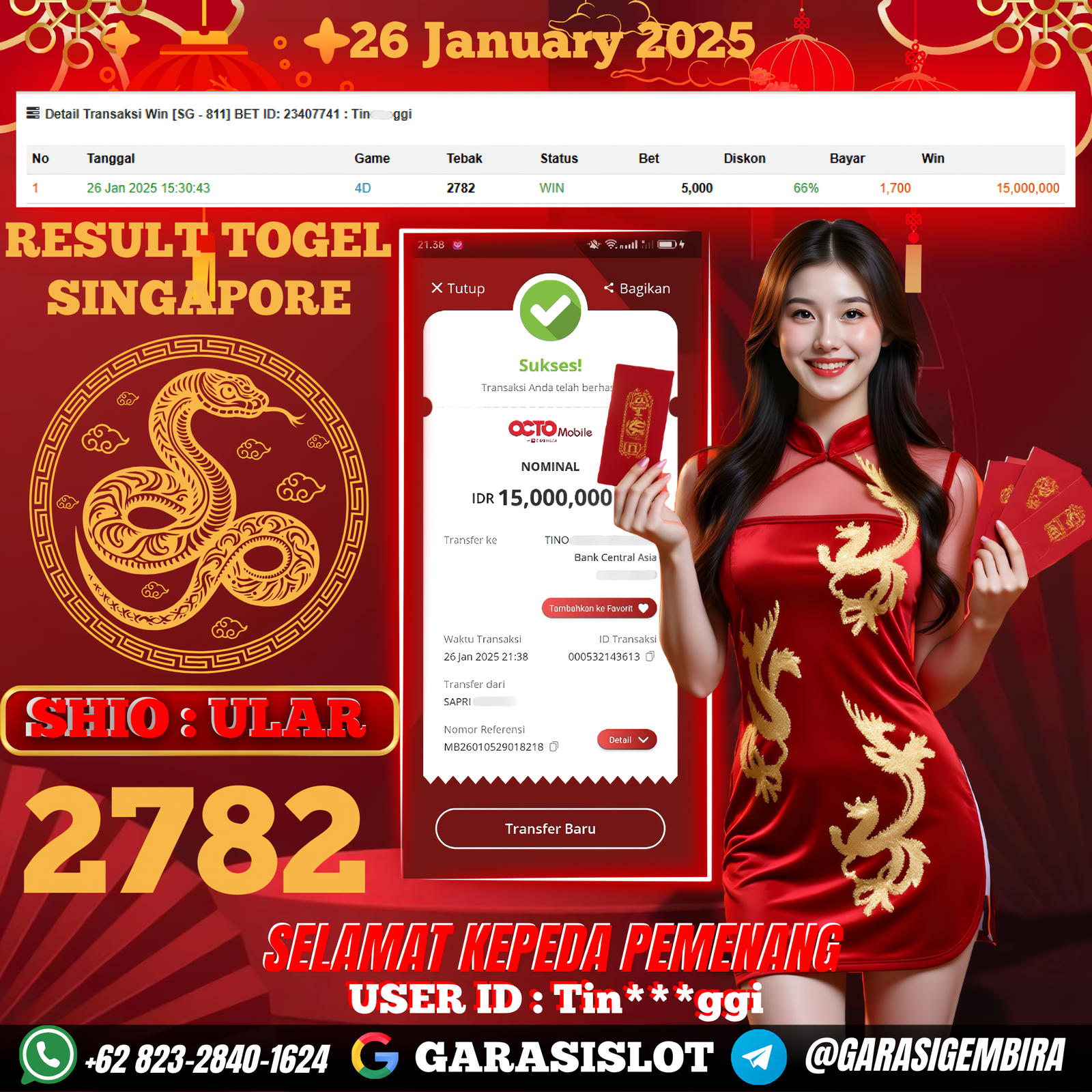 Selamat Kepada Id :ID: TIN***GGI Atas Withdraw Rp. 15.000.000 Juta Hari ini. Ditunggu Withdraw Selanjutnya dan ajak juga teman temannya bergabung di GARASISLOT GARASISLOT adalah situs game
