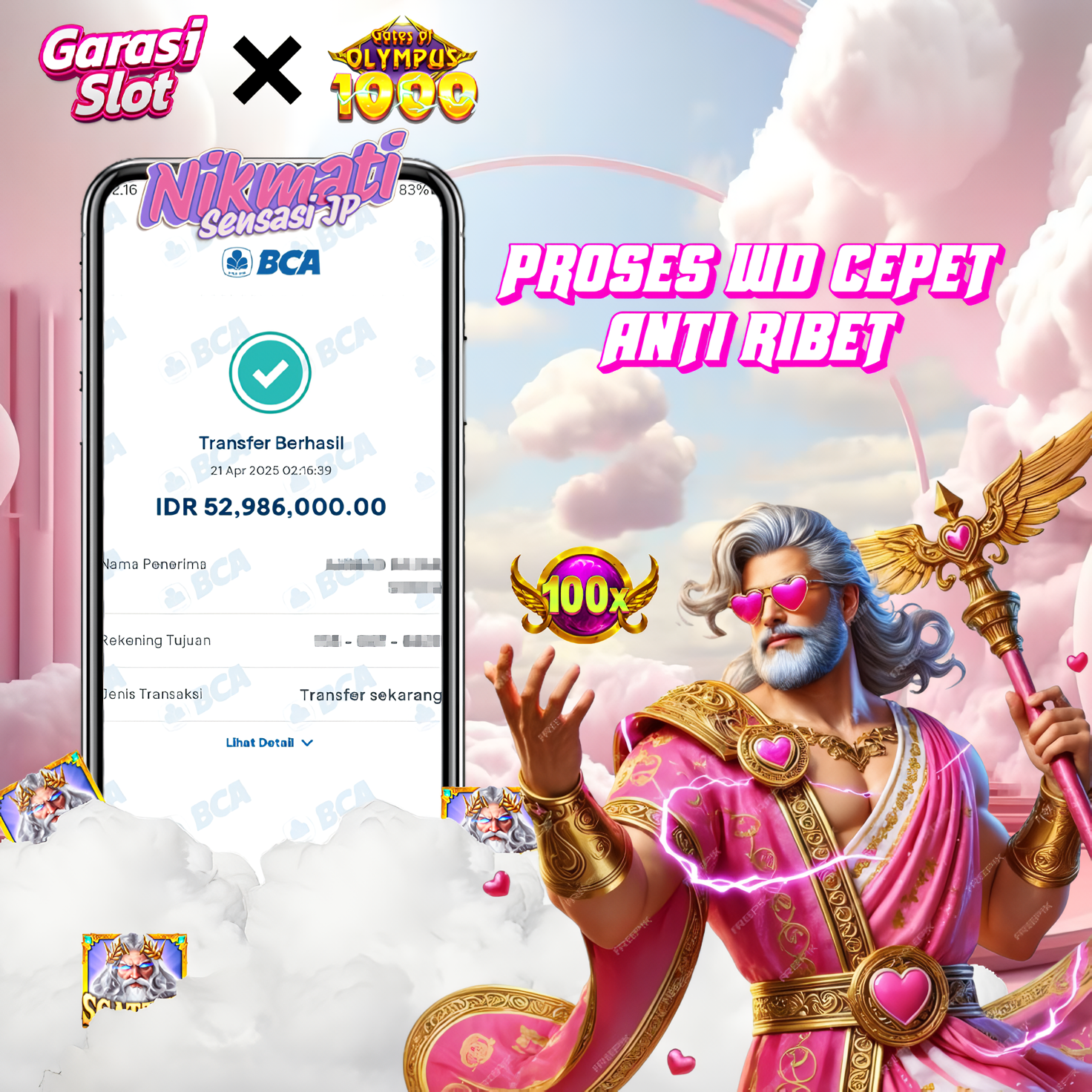 Selamat atas kemenangan user ID: BO***99 yang telah berhasil mendapatkan jackpot di permainan PRAGMATIC dengan kemenangan besar RP 52.986.000,-. Setelah berhasil isi form withdraw team GARASISLOT